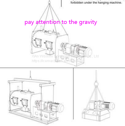 If you use hoister, please use the steel rope to fasten up 4 braces on 4 corners of mixer. Due to the weight of mixer is not so balanced (the side of motor & gearbox is heavier than the other side), please pay much attention to the lifting-position and barycenter/center of gravity.