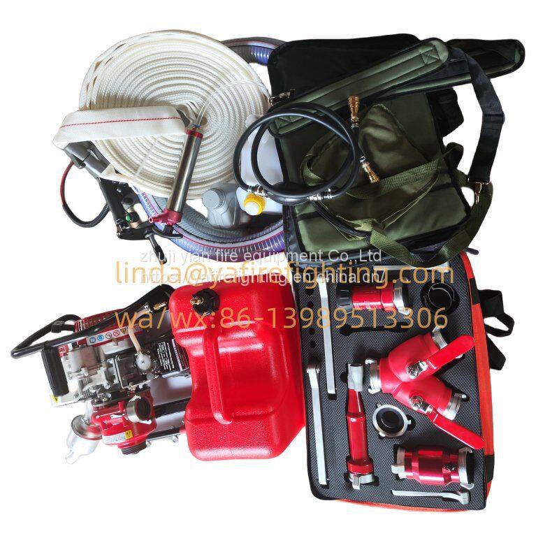 2-stroke air cooled emergency forest pump set is a portable and reliable firefighting tool. It consists of an engine, water pump, spray nozzle, hoses, and accessories. The pump body and impeller are made of strong, corrosion-resistant aluminum alloy. The engine is a single-cylinder, air-cooled, 2-stroke design with electronic ignition.