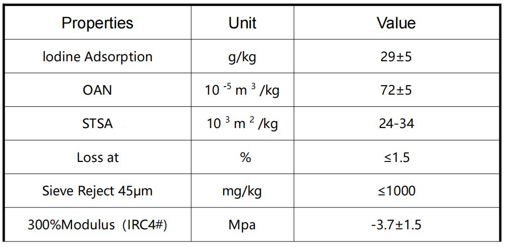 Carbon black used for tread rubber of truck tire, passenger tire carbon black and rubber products requiring high strength and high wear resistance.