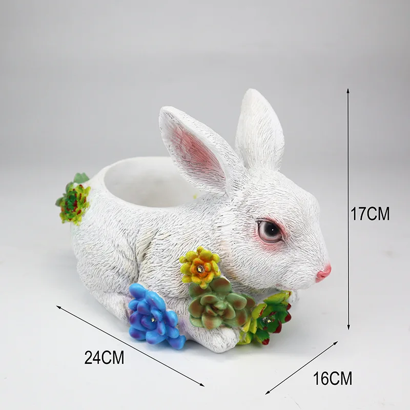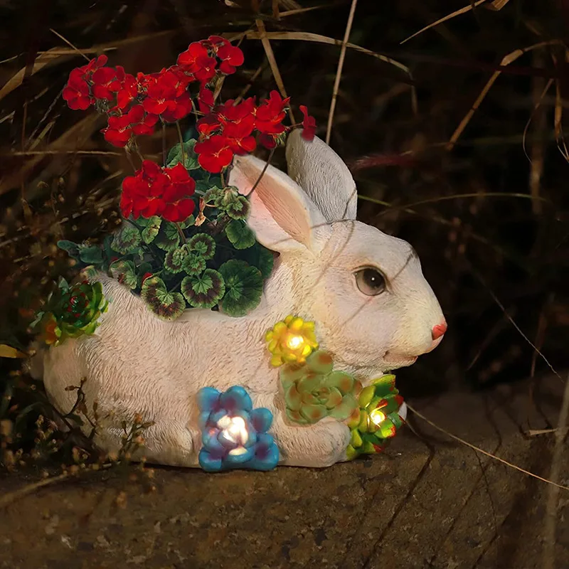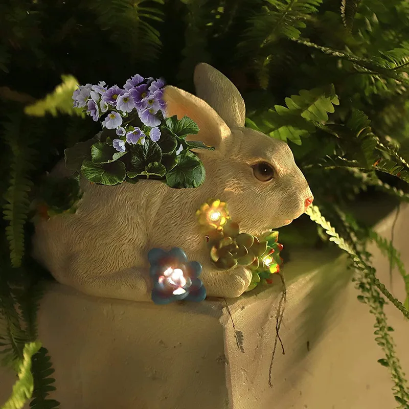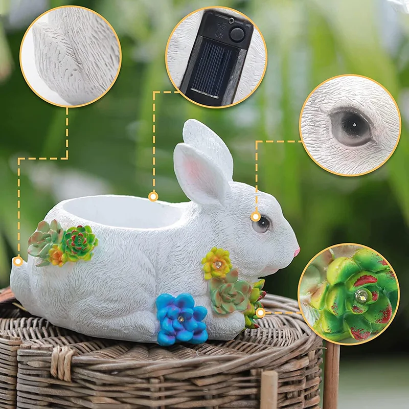 Hand-Painted Rabbit Figurine Succulent Pots Yard Resin Ornaments Solar Lights Easter Gift