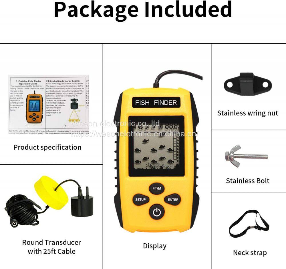 Handheld Fish Finder, Portable Fishfinder Fish Depth Finder With Sonar Sensor Transducer and LCD Display