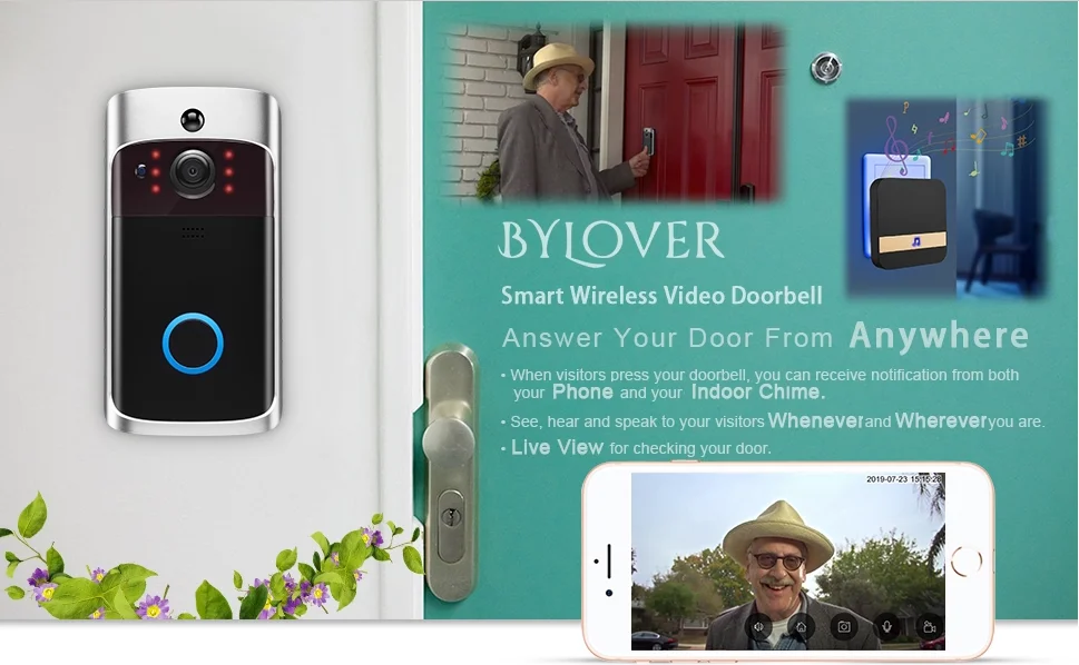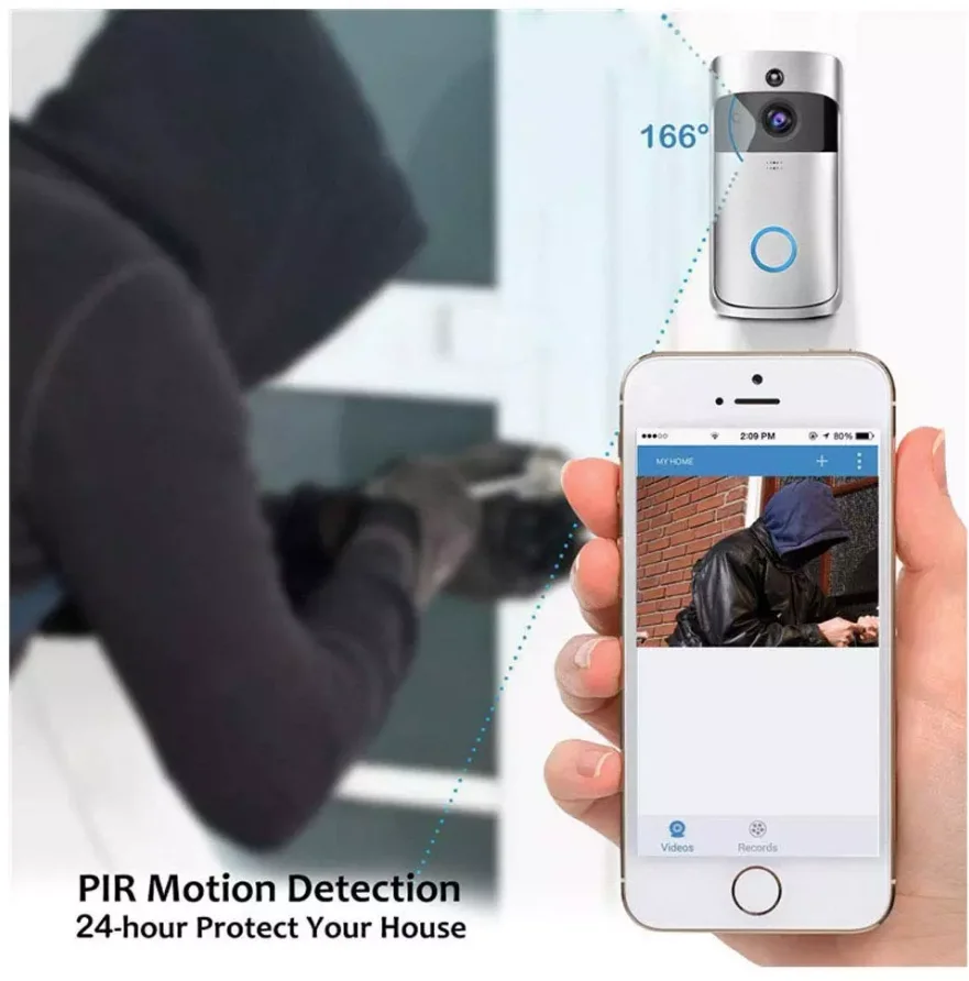 V5 Video Doorbell Smart Wireless WiFi Security Door Bell Camera Visual Recording Home Monitor Night Vision Intercom Door Phone