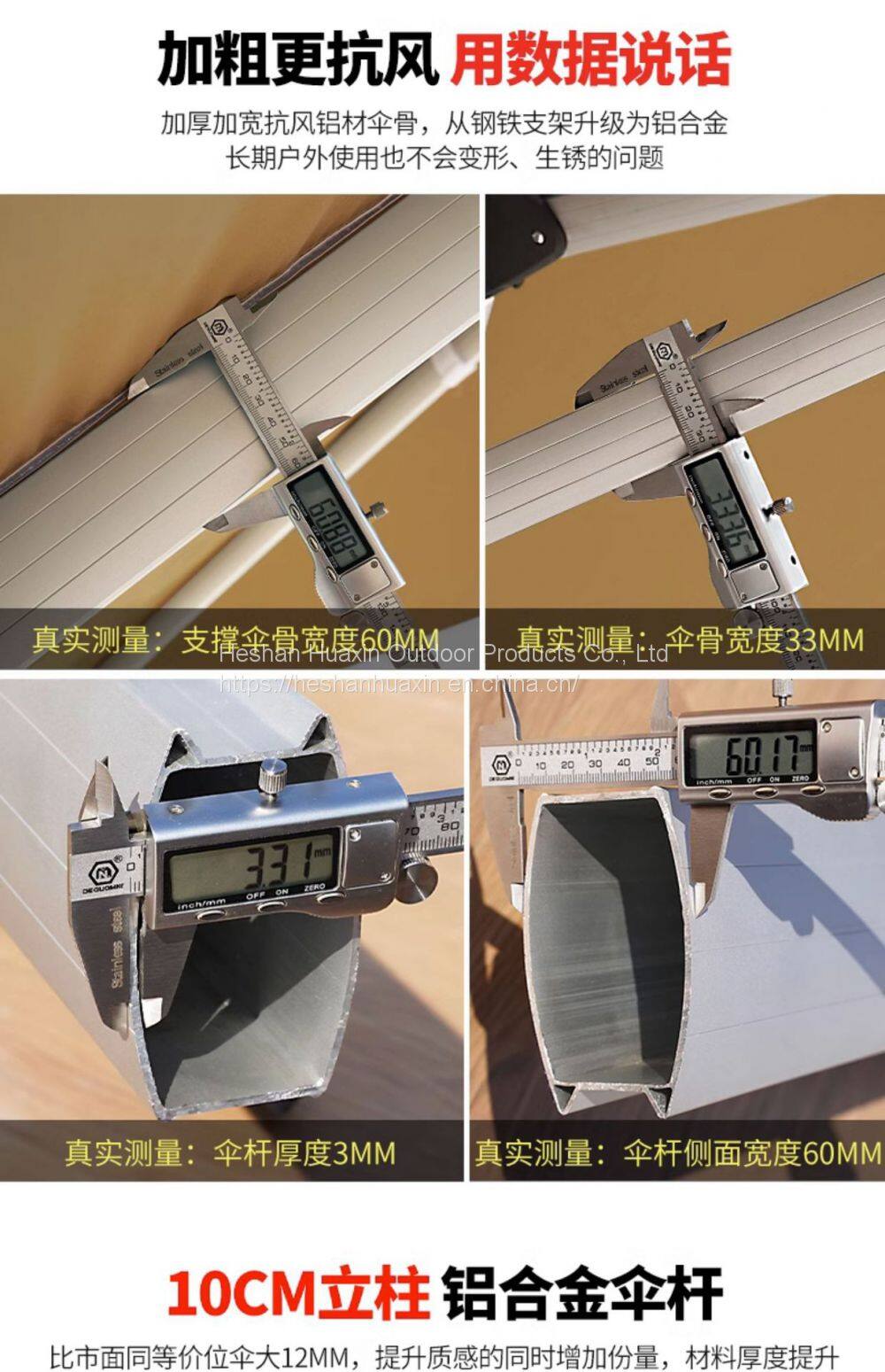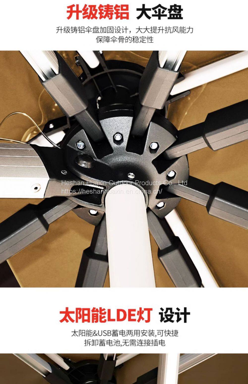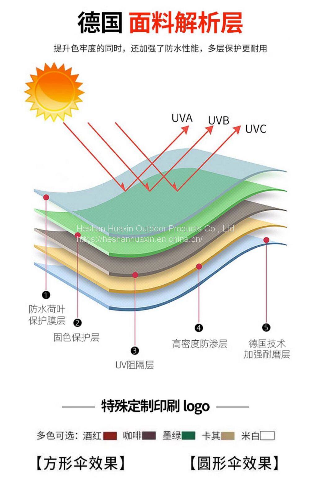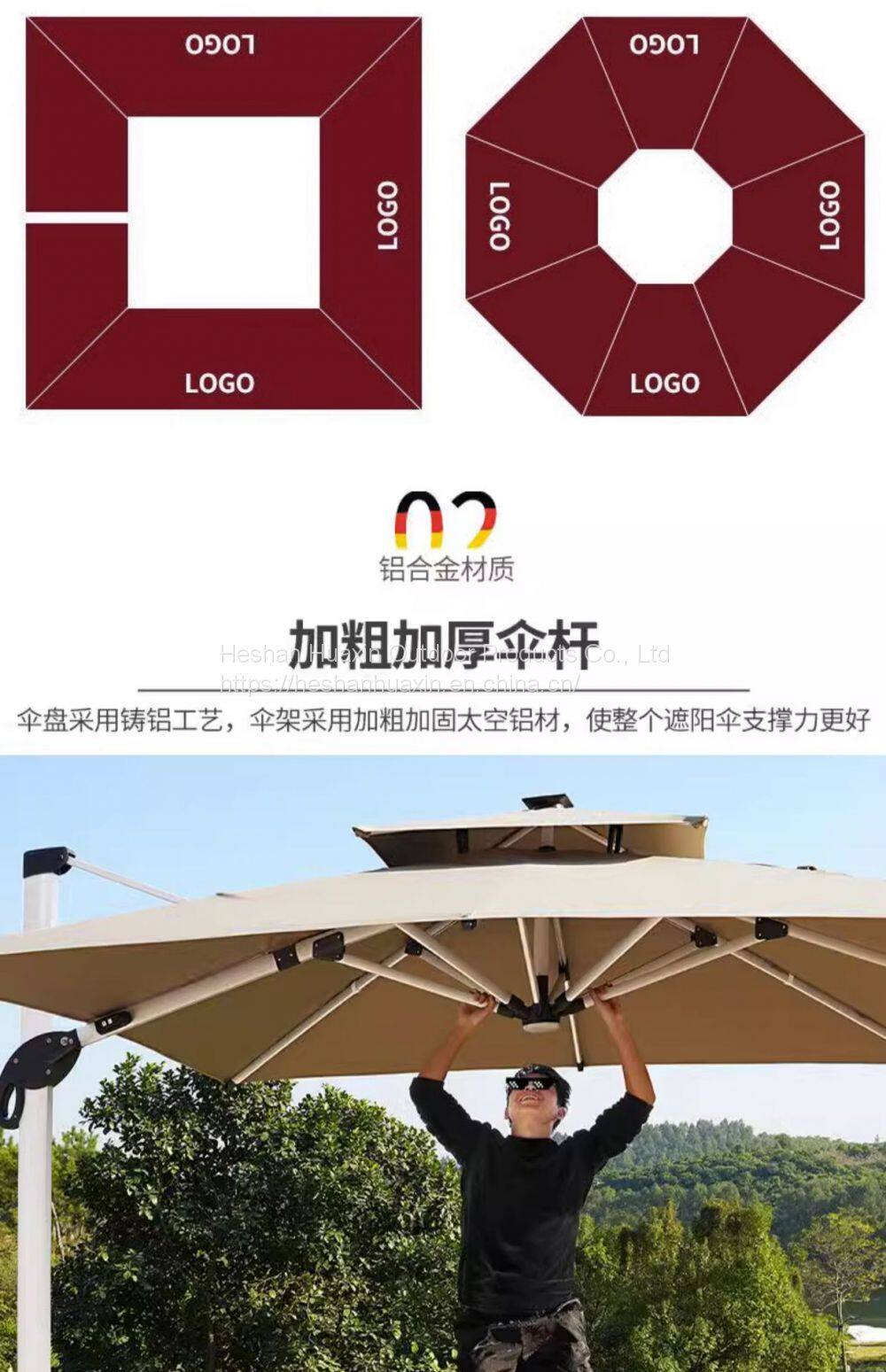 Customized logo made of waterproof polyester fabric, available in 420D or 600D colors. Umbrella bone materials include aluminum alloy, wood, and iron.