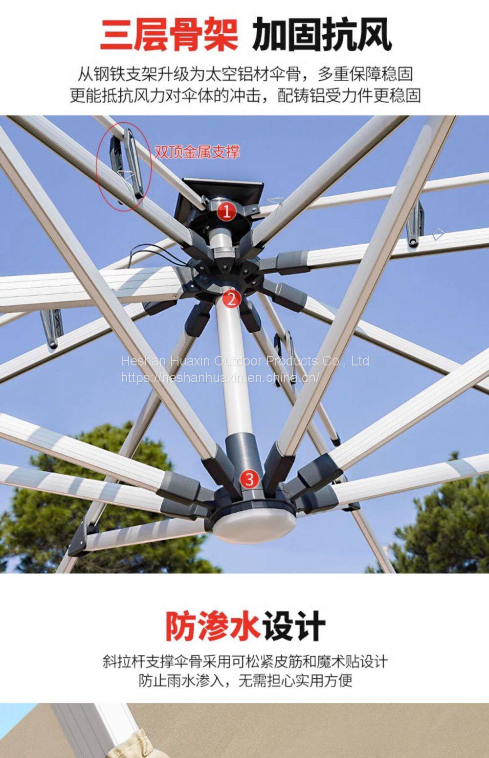 Double roof breathable roof, rain and sun proof, strong wind resistance, sturdy and durable, effectively isolating UVA and UVB for over 95% in both rain and shine.