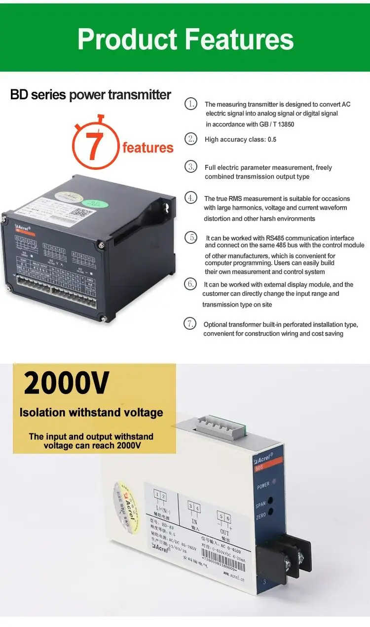 Acrel Active Power Transmitter AC/DC85-270V 1 Channel Analog Output BD-3PUS$ 95.2 - 95.2MOQ: 1 Piece