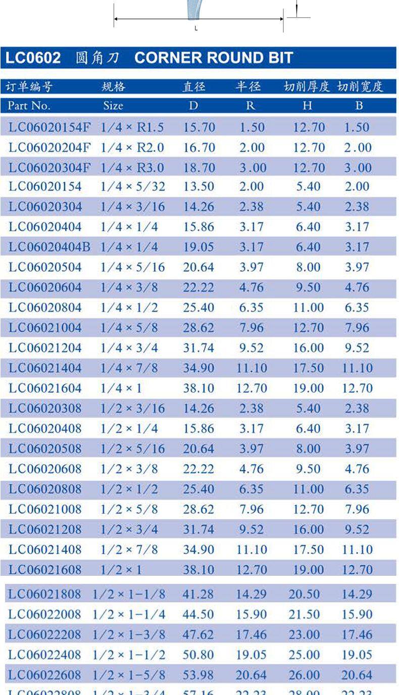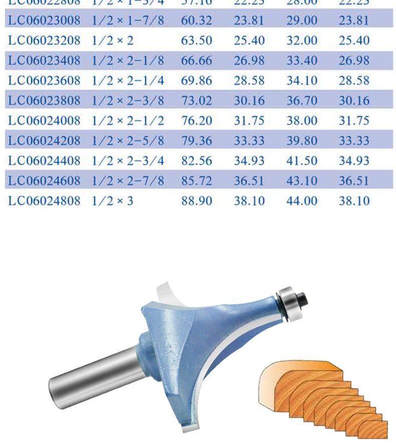 TIDEWAY LC0602 Corner Round bits Double Flute Solid Surface Lower Ball Radius Bearing Guide Carbide Round Over Edging Router Bit