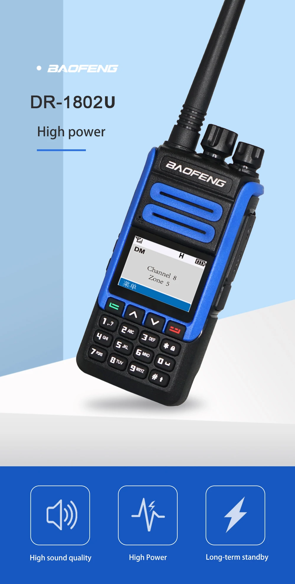 Home > Products > Walkie Talkie/radio > Factory Price Baofeng DR-1802U Walkie Talkie Digital+Analog Mode DMR Portable Two Way Radio Compatible With Mototrbo Repeater