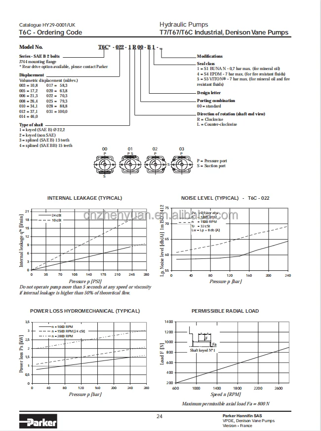 Parker Denison Hydraul Piston Pump T6C-028-1R00-B1,T6C-028-2R01-B1,T6C-031-1R00-B1 ,T6C-031-1R03-B1,T6C-031-2R00-B1,T6C-031-2R01-B1