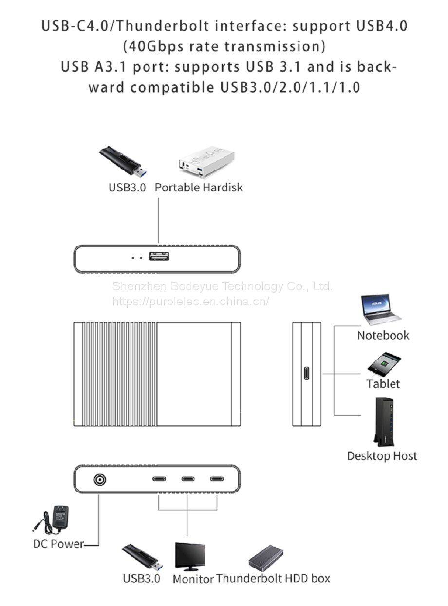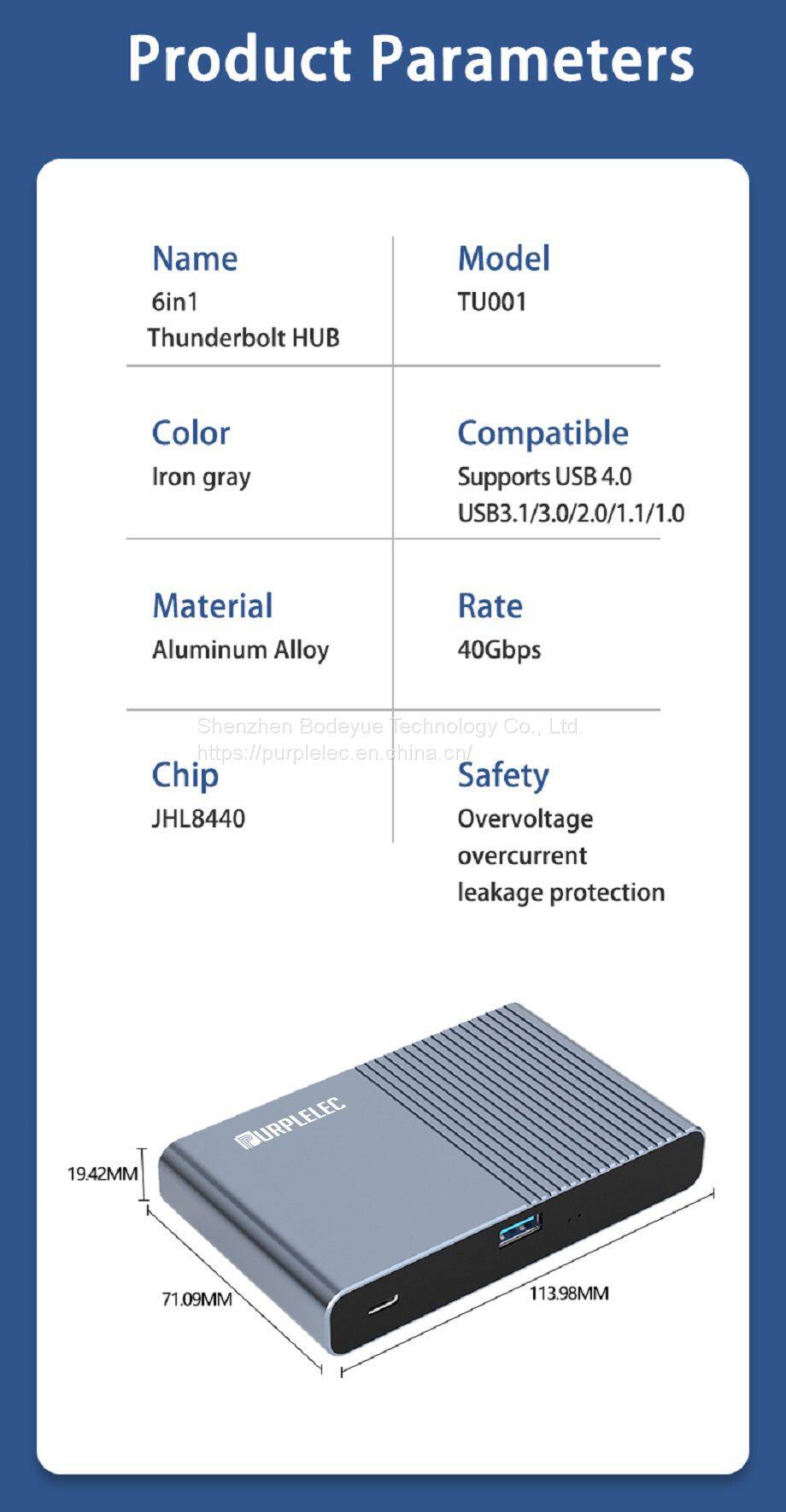 Use the original imported JHL8440 chip, "core" technology, quality assurance, each function is controlled by an independent chip to ensure excellent performance, 3 Type-c lightning interfaces, each interface can achieve data and video output, and data transmission Up to 40Gb/s rate, up to 8K video display, and backward compatibility; 1 USB3.1 interface, the maximum transmission rate can reach 10Gb/s.