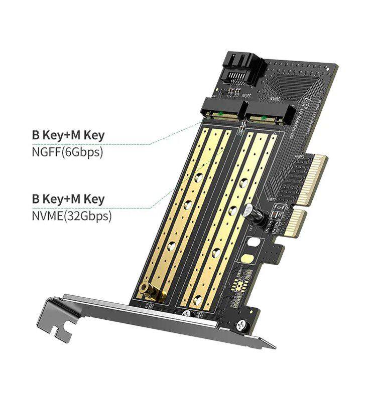 Dual Protocols M.2 NVME(PCIe & SATA) SSD Storage Adapter PCIe Card