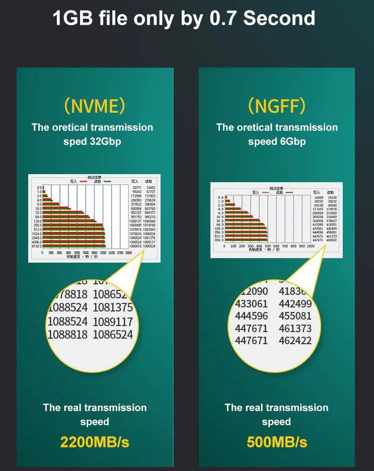 Dual Protocols Portable M.2 SSD Enclosure Up To 4TB