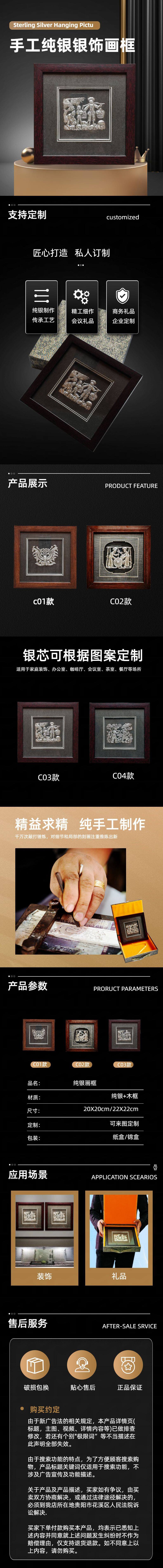 Guizhou silver decoration painting originated from ethnic minority areas in Guizhou and has a long history of production. It cleverly utilizes the rich local silver mineral resources and combines traditional production techniques to achieve this legendary treasure. The raw material for Guizhou silver decorative paintings is mainly pure silver, which has been meticulously crafted to present a unique texture and luster.