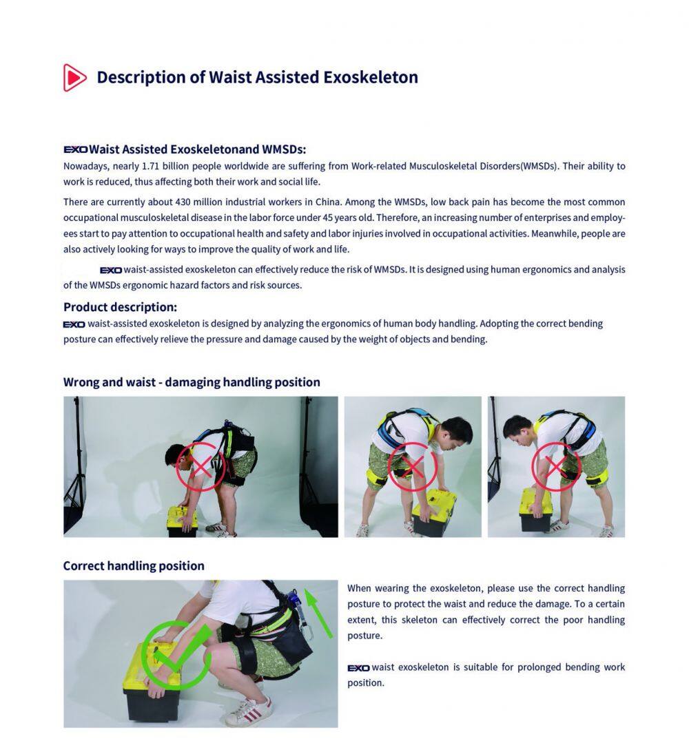 PHES is a new type of industrial exoskeleton that greatly enhances the wearer's productivity and reduces the pressure and torsion of the L5/S1 disc area when the wearer's back is bent down. Through reasonable ergonomics and structural design, the user's strength and freedom of action are greatly enhanced.