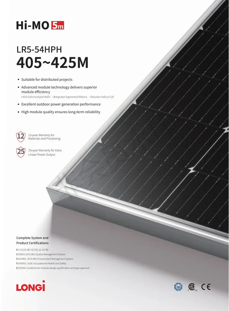 LONGi Black Solar Panels 405w 420w PV Module 410Watt Mono Solar Panel PERC Battery PV Solar Module