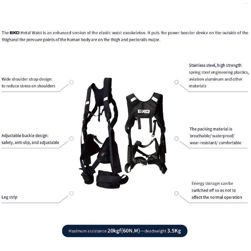 When the laborer needs to stay in the bending position for a long time, the spring maintains the supporting force, which makes the waist muscles more relaxed; when the laborer needs to straighten the waist or lift heavy objects, the stored energy (elastic force) pushes the human body upward, and the human waist Muscles use much less force than usual to get the job done.