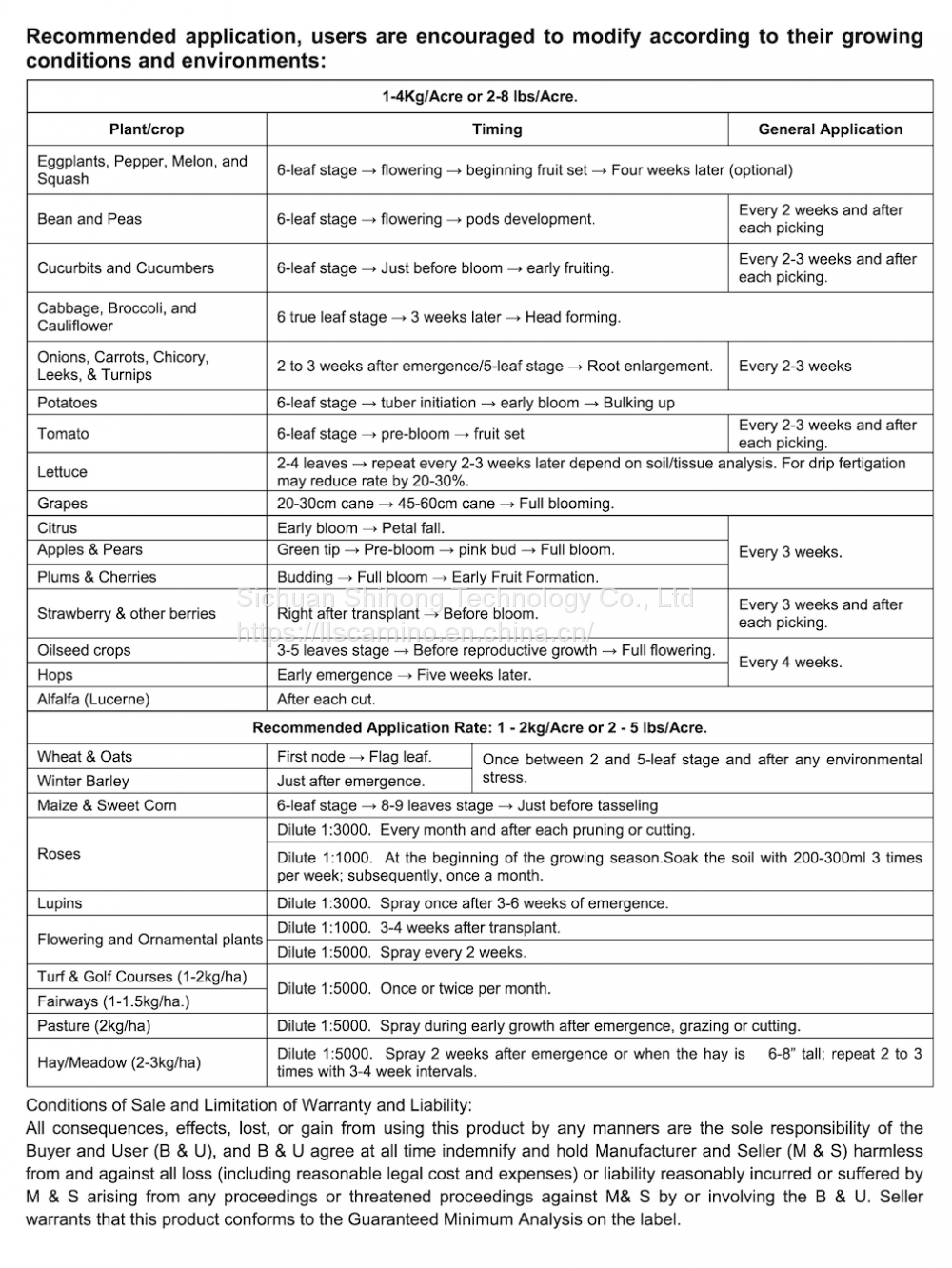 800-1000 times dilution, 2~4KG/mu |