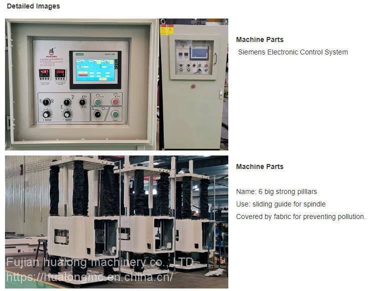 2) Adopts 4 pillars for spindle sliding, which ensure the structure of the machine is steady and the lifting is stable.