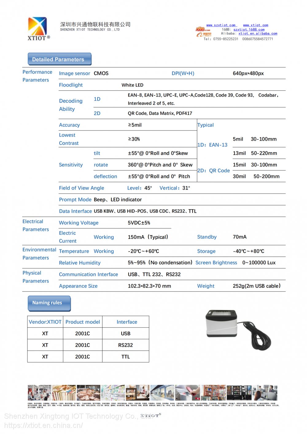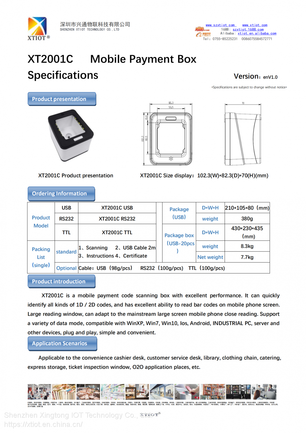 XT2001C XTIOT 2D Box Barcode Scanner Barcode Reader Qr E Pay Barcode ScannerNegotiableMOQ: 1 Piece