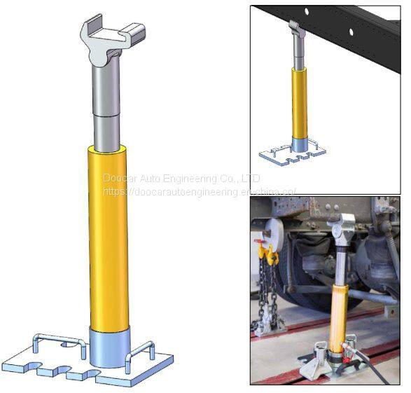 DSR74 Jack can be matched with frame locker and Y-direction press; it can effectively repair the Z-direction vertical deformation of the frame; equipped with 25-N high-pressure hydraulic cylinder, powerful power, easy correction; equipped Heavy-duty movable wheels, easy to move; equipped with a full Jt belly height and locking device, which can carry out hydraulic jacking correction in a wide range and safety.
