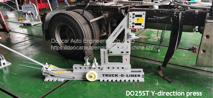 The Truck-O-Liner frame straightening and repair system, through the combination of Y-direction press, Z-direction press, frame locker, and C-clamp, can effectively deal with lateral bending, vertical bending, distortion, Diagonal