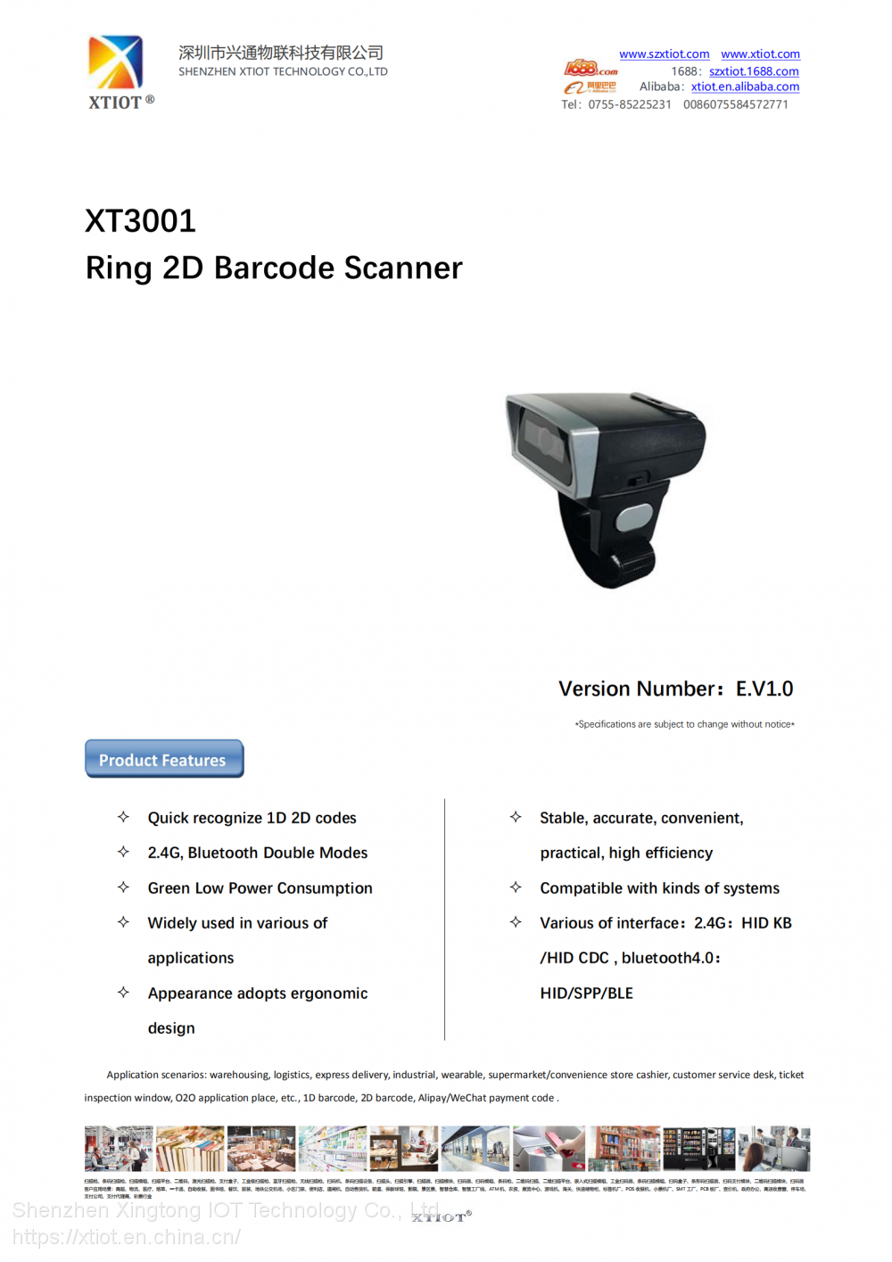 XT3001 XTIOT 2D Ring Barcode Scanner Handheld Bar Code Scanner Barcode Wireless ScannerNegotiableMOQ: 1 Piece