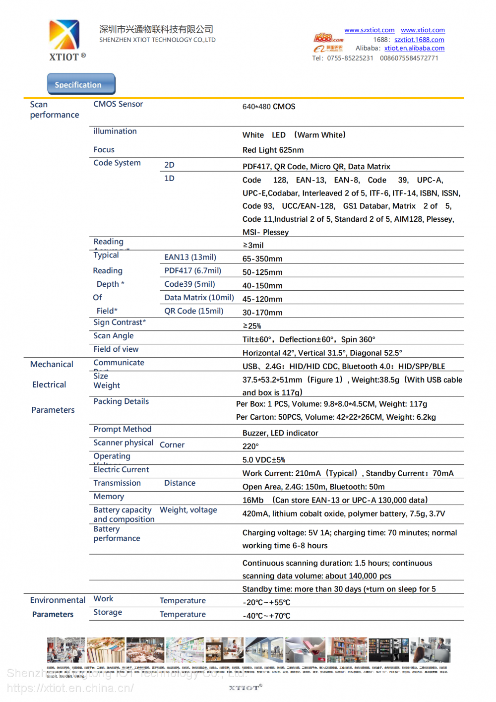 XT3001 XTIOT Oem 2D Scanner Blue Tooth Barcode Barcode Scanner 2D WirelessNegotiableMOQ: 1 Piece