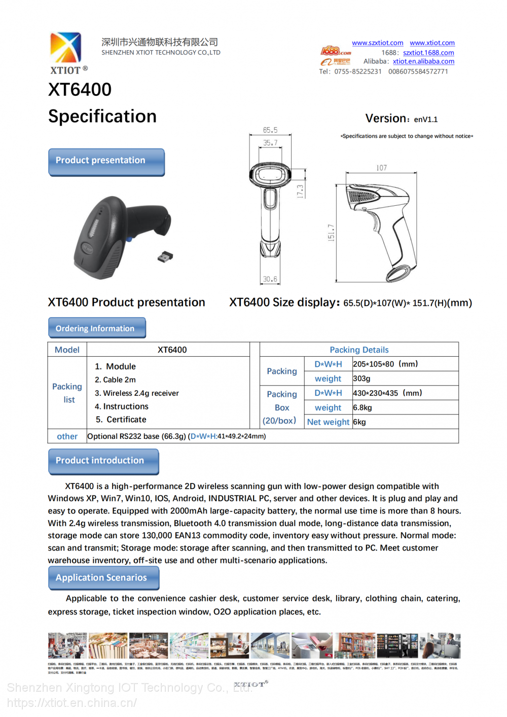 XT6400 Wireless 2D QR Barcode Scanner 3 In 1 2.4Ghz Wireless USB Wired Connection Connect Smart Phone Tablet PC Image Bar CodeNegotiableMOQ: 1 Piece