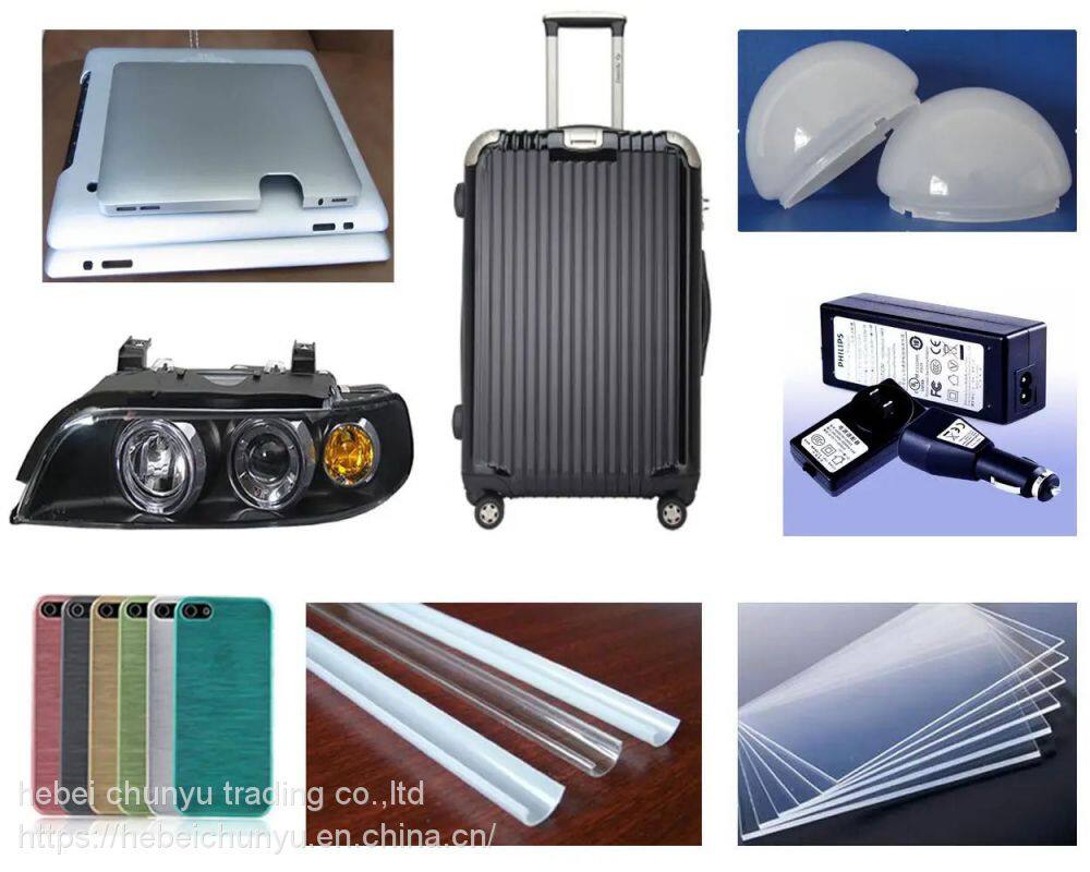 3.PC can be made into Doublewall hollow bars, glass of greenhouse. For textile industry, PC is suitable for making bobbin, textile machine bearing. For daily, PC is good material can be made into tableware, toys and models.