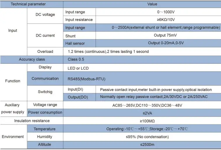 | * DC Current: external shunt or hall element(range programmable) * DC Voltage: DC0-1000V * LED display | ||