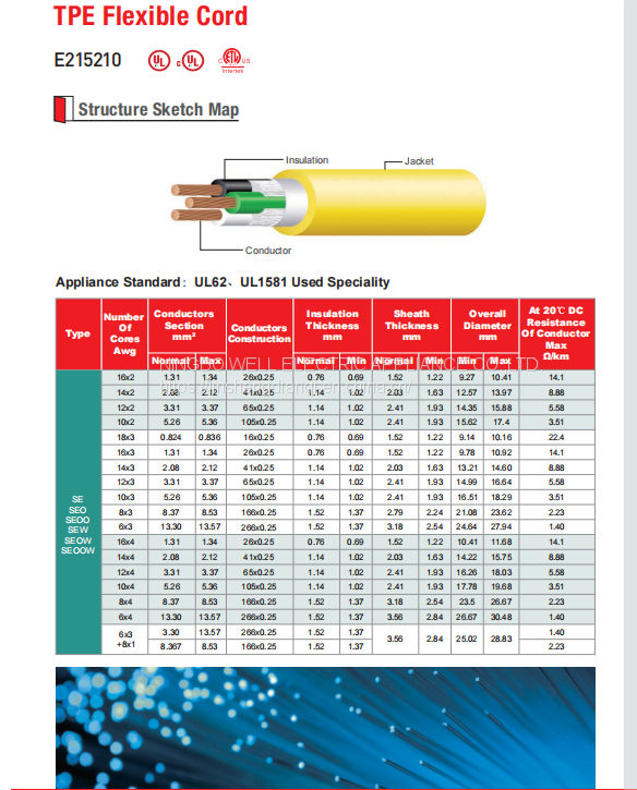 SEOOW SEOW SEW SE SEO SEOO 600V TPE Flexible Cord UL62 UL1581 Standard
