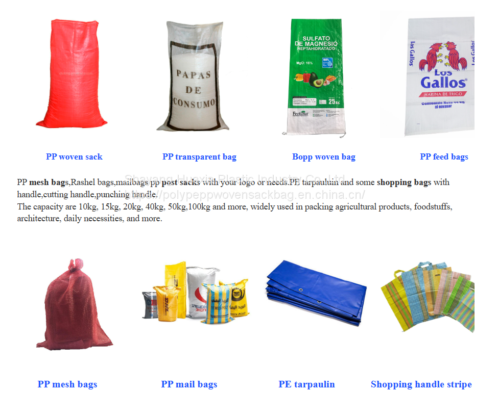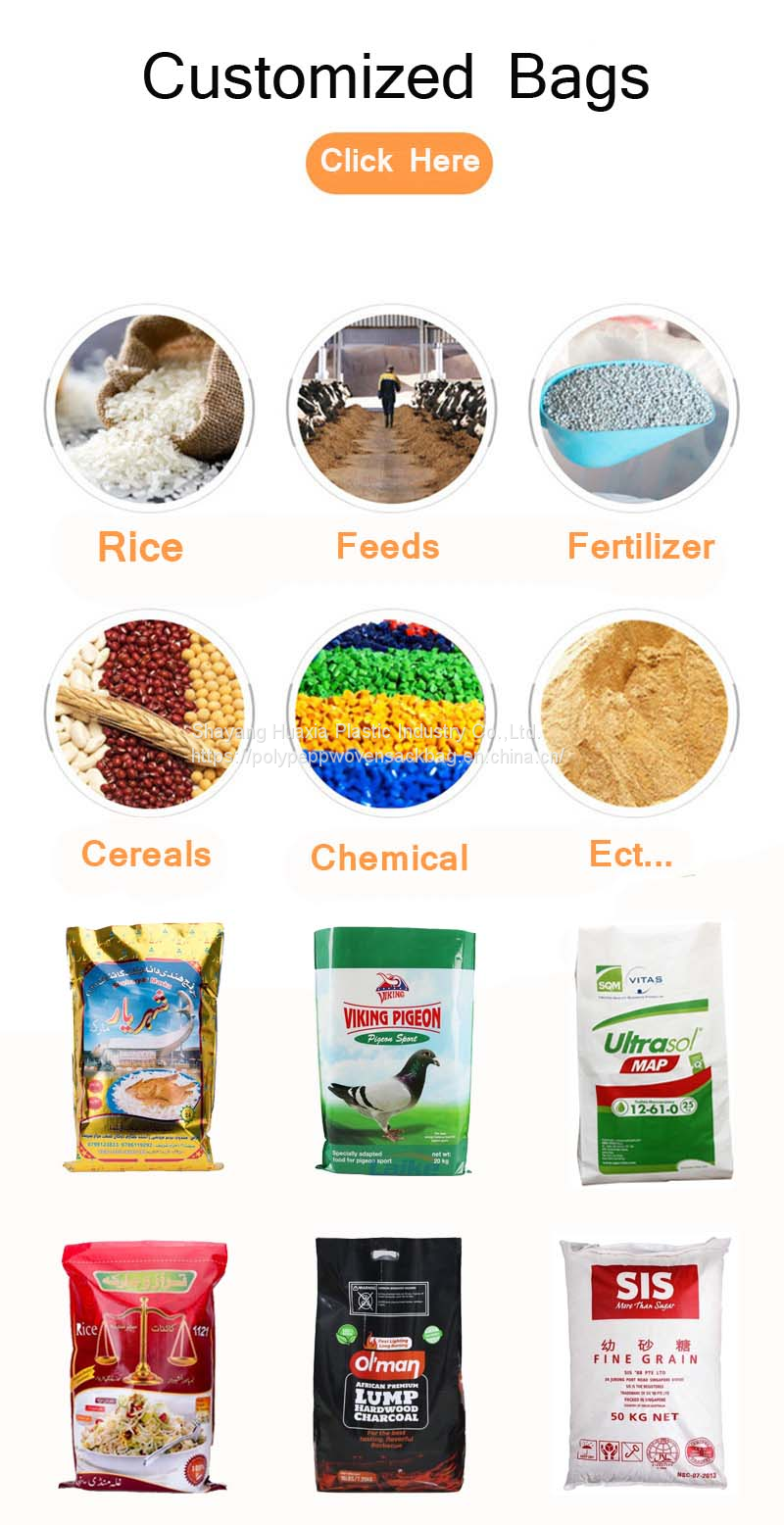 PP woven bag , potato bag, maize bag, color bags, rice bags, chemical bags, flour bags, sugar plastic bags, fertilizer bags, cement bags, feed bags, valve pockets, Feed bags , transparent bags, polypropylene bags, urea bags, seed bags, fertilizer bags series, Corn bags, laminating bags, insulation mortar bags, waterproof bags, Recycled material bags, Virgin material bags,Can be customized according to customer request.