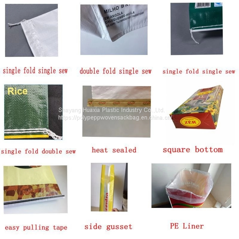 top sew with cord, waterproof, anti UV, insulation, ventilate, laminated / coated, HDPE liner, LDPE liner,matte film, heat cut, cold cut, gusset M side, block bottom, zig-zag cut, value opening, fold, stitch / sew, hemmed, top single folded & single stitched, bottom single folded single stitched, double folded single stitched, relief printing / offset printing / intaglio printing, gravure printing / bopp printing / full color printing,flexography, cross corner lifting loops & side seam loops, open/duffle top and flat bottom&filling spout and discharge spout, Hydraulic packing, etc.