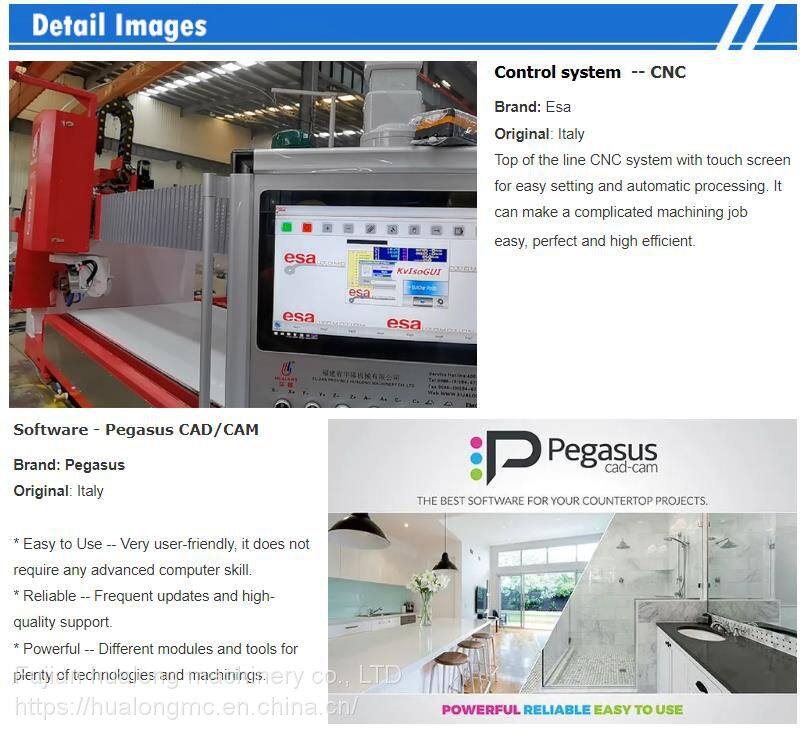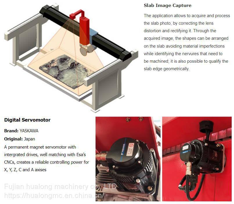 with top of the line Italian CNC control system ESA, is a fully automated dual-use machine, a combination of a 5-axis CNC saw and a 5-axis CNC waterjet, which is gone together constructing the revised concept system for cutting granite, marble, quarts, limestone and the rising new ceramic material.