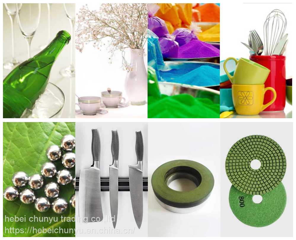 It is mainly used in green grourd pave paint colorant, smelting metal chromium, chromic carbide and catalyst of organic synthetic chromium. It is used as coloring agent for coloring painting on ceramics and enamelware and imitation leather or building material; It is also used for making sun-proof coating, abrasive, green polishing compound, refractory materials and special printing ink for printing bank note.It is mainly used in green grourd pave paint colorant, smelting metal chromium, chromic carbide and catalyst of organic synthetic chromium. It is used as coloring agent for coloring painting on ceramics and enamelware and imitation leather or building material; It is also used for making sun-proof coating, abrasive, green polishing compound, refractory materials and special printing ink for printing bank note.
