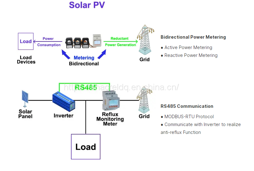 The rail-type multifunction electrical instrument with external Rogowski coil and split-core current transformer is applicable for the energy-saving reconstruction project in high energy consumption industries including the smelting, iron and steel, welding and semi-conductor industry. It is also suitable for applications such as the power monitoring of grid-connected cabinet for distributed photovoltaic power cabinet and energy demand management. It boasts of no need of bus removal, easy connection and safe construction, saving reconstruction cost and raising efficiency for the user. It integrates the measurements of all electric parameters (including single-phase or three-phase current, voltage, active power, reactive power, apparent power, frequency and power factor ) and comprehensive energy monitoring and examination management. Meanwhile, it also has various peripheral interfaces for the user to choose: the RS485 communication interface with MODBUS-RTU protocol can meet the need of online communication management; the interfaces with switch input and relay output can realize the remote signalling and remote control of the circuit breaker switch. It is very suitable for real-time power monitoring system with an LCD display and the panel buttons to realize the setting and control of parameters.