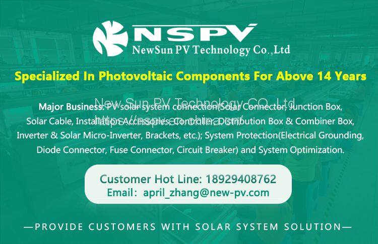 - Main products: PV4.0 connector 1000V DC/PV4.0 connector 1500V DC, Solar DC Fuse connector 1000V/1500V, BIPV Junction Box/Miniature Circuit Breaker, PV Solar Cable/Cable Assemlies/Solar Switch, AC3/AC5 Cores Connector/AC1/3/4/5Cores Connector, DC MCCB/PV Surge Protective Device(SPD), PV Fuse holder and Fuse Link