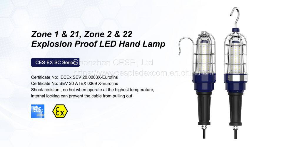 Zone 1 Explosion Proof LED Hand Lamp - 360 Beam Angle - Top Hook