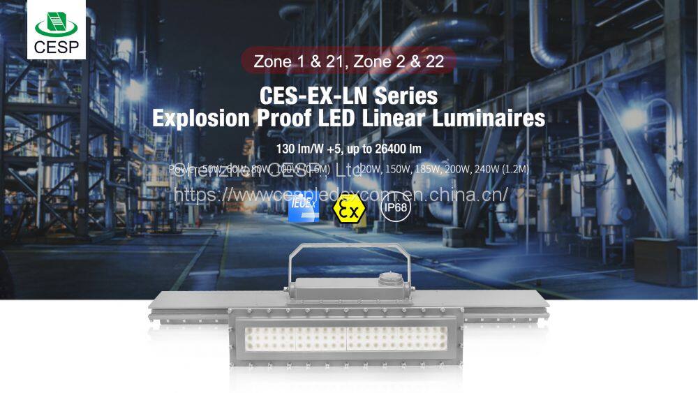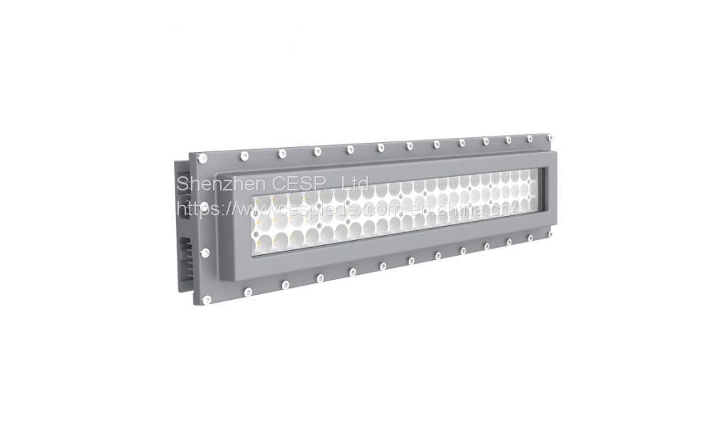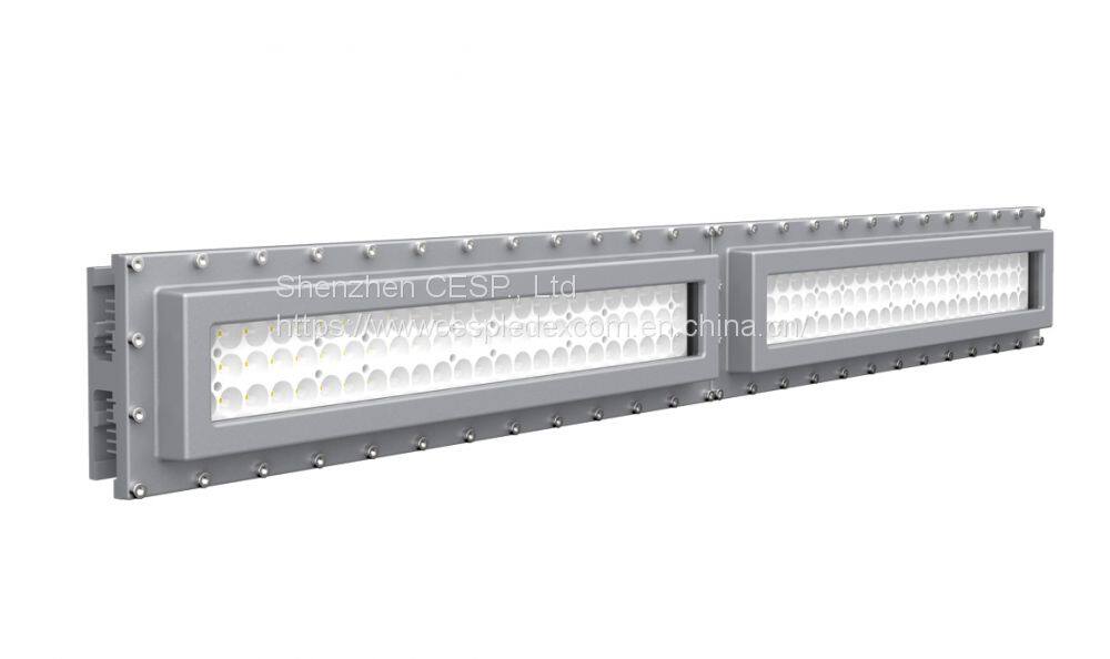 10mm-thick tempered glass + ADC12and 6063 aluminum housing for CES-EX-LN explosion proof led linear light is shock-resistant, anti-vibration, can withstand 7J impact, and is equipped with micro-light elements to reduce direct visual contact with the light source, prevent glare, and replace the old and prone to failure Fluorescent light fixtures.