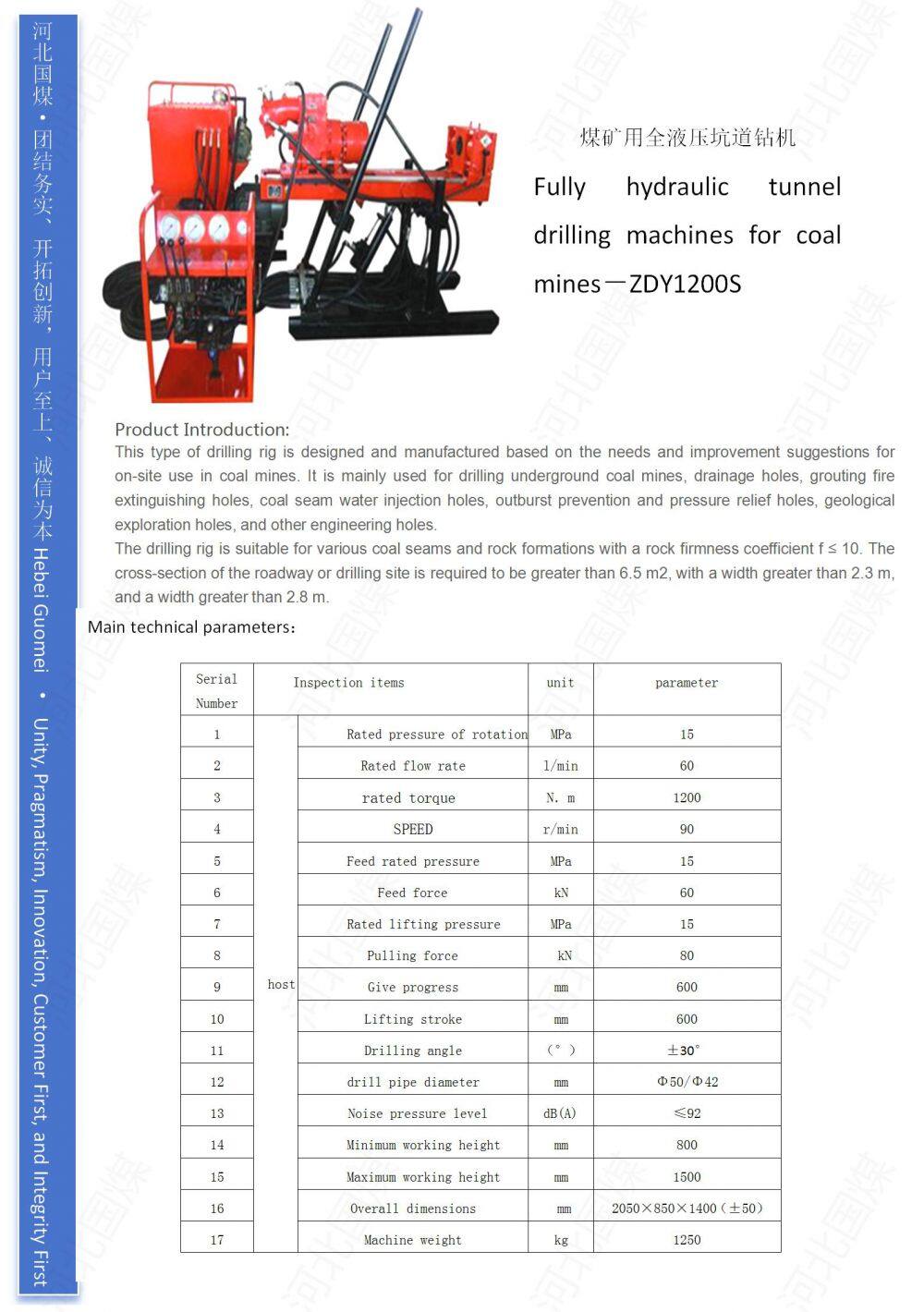 Fully Hydraulic Tunnel Drilling Machines for Coal MinesZDY1200S