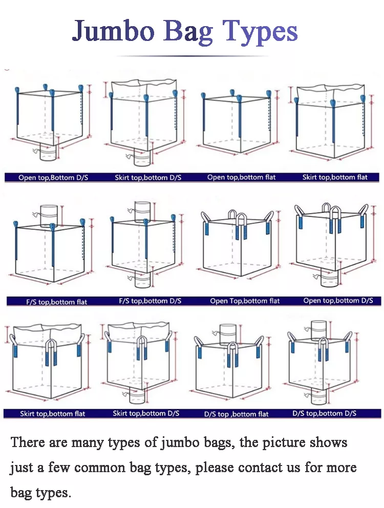Bulk big bag with seamless made from pp woven fabric on a circular loom and cut to a suitable bag height. This eliminates the need for vertical seems. The tubular shape design is ideal option for fine or powder materials. Bottom of bag can be square or circle shape available.