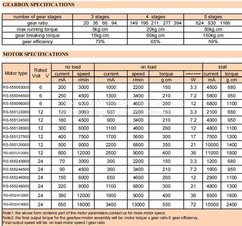 | Model Number | MFC-555 | Type | Gear Motor | |