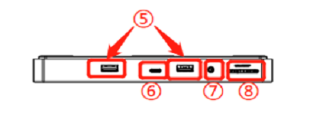 9、⑧ 1*TF card port, support UHS-3 transmission standard and compatible with Speed Class transmission standard, TSD/TF 4.0 rate, support SD/TF simultaneous read and write operations, support Micro SDXC, Micro SD, Micro SDHC Card;