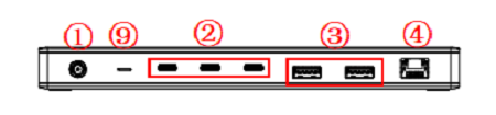 2、⑥ 1*TYPE-C USB4/Thunderbolt upstream port with a maximum transfer rate of 40Gbps (backward compatible with USB3.2/USB3.0/USB2.0). Supports DP Alt Mode 1.4. Support PD3.0 protocol, can charge upstream computer or mobile phone, up to 60W dynamic withholding;