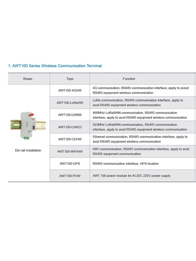 Acrel AWT100-CEHW Wireless Communication Terminal Ethernet Communication Din Rail Mounted RS485 Communication InterfaceNegotiableMOQ: 1 Piece