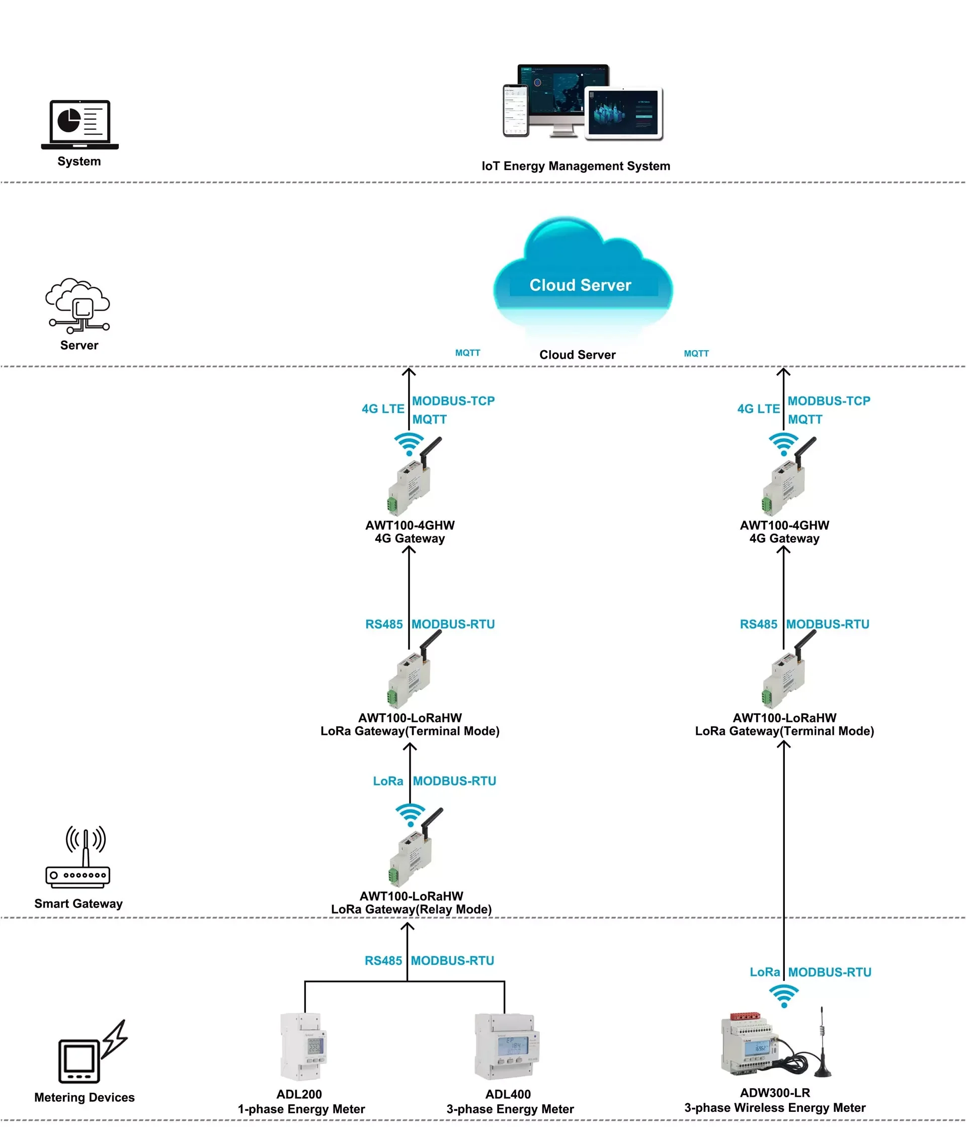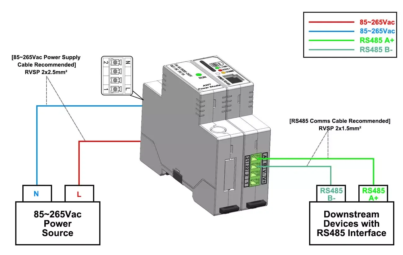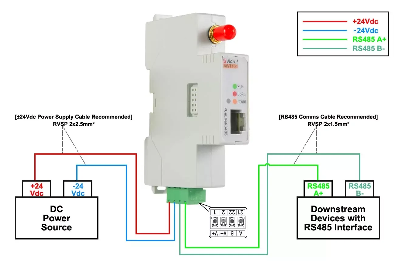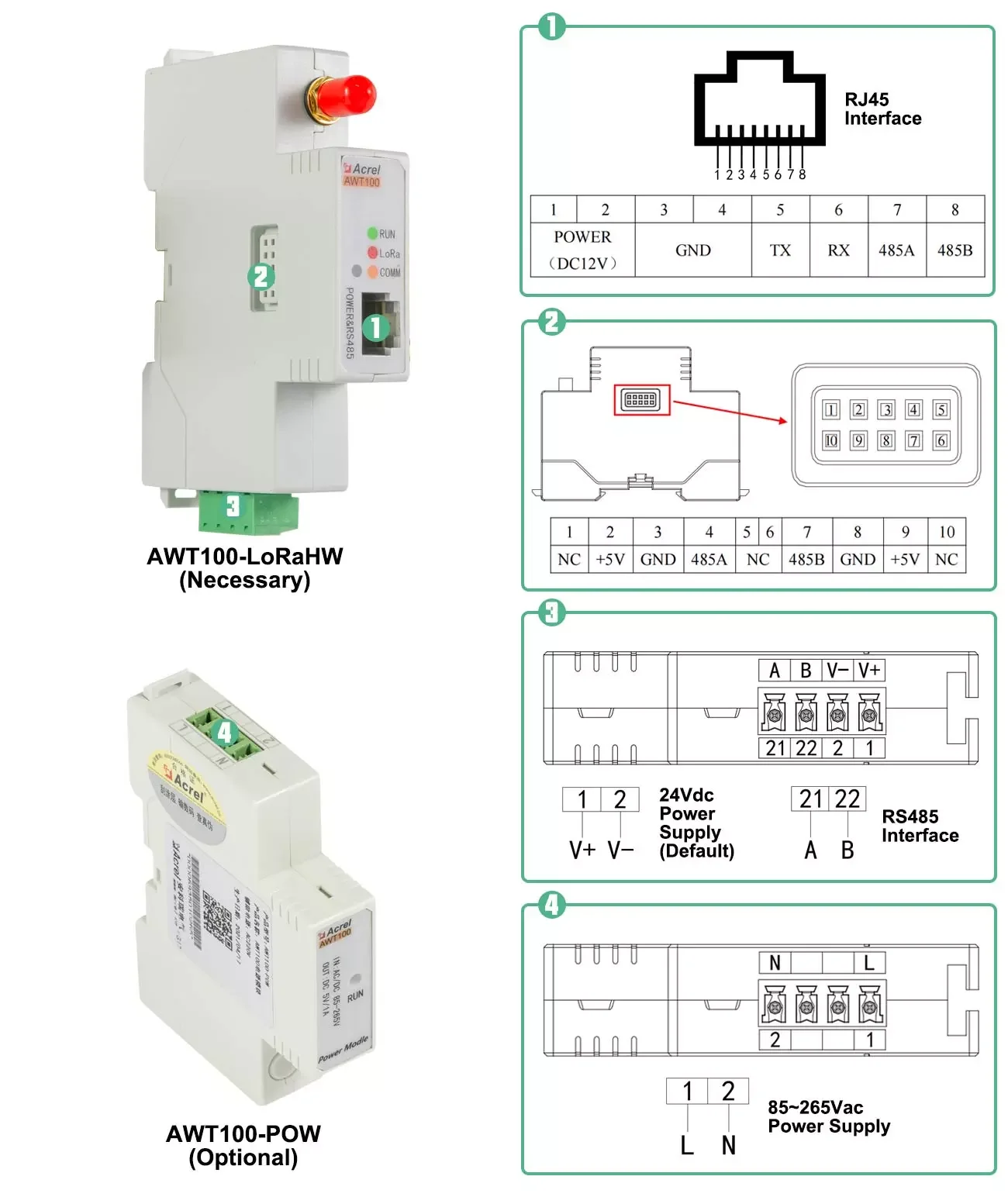 AWT100-LoRaHW IoT Smart LoRa Wireless Gateway RS485 24Vdc Default 85~265Vac Vdc via AWT100-POW Terminal Mode&Relay Mode