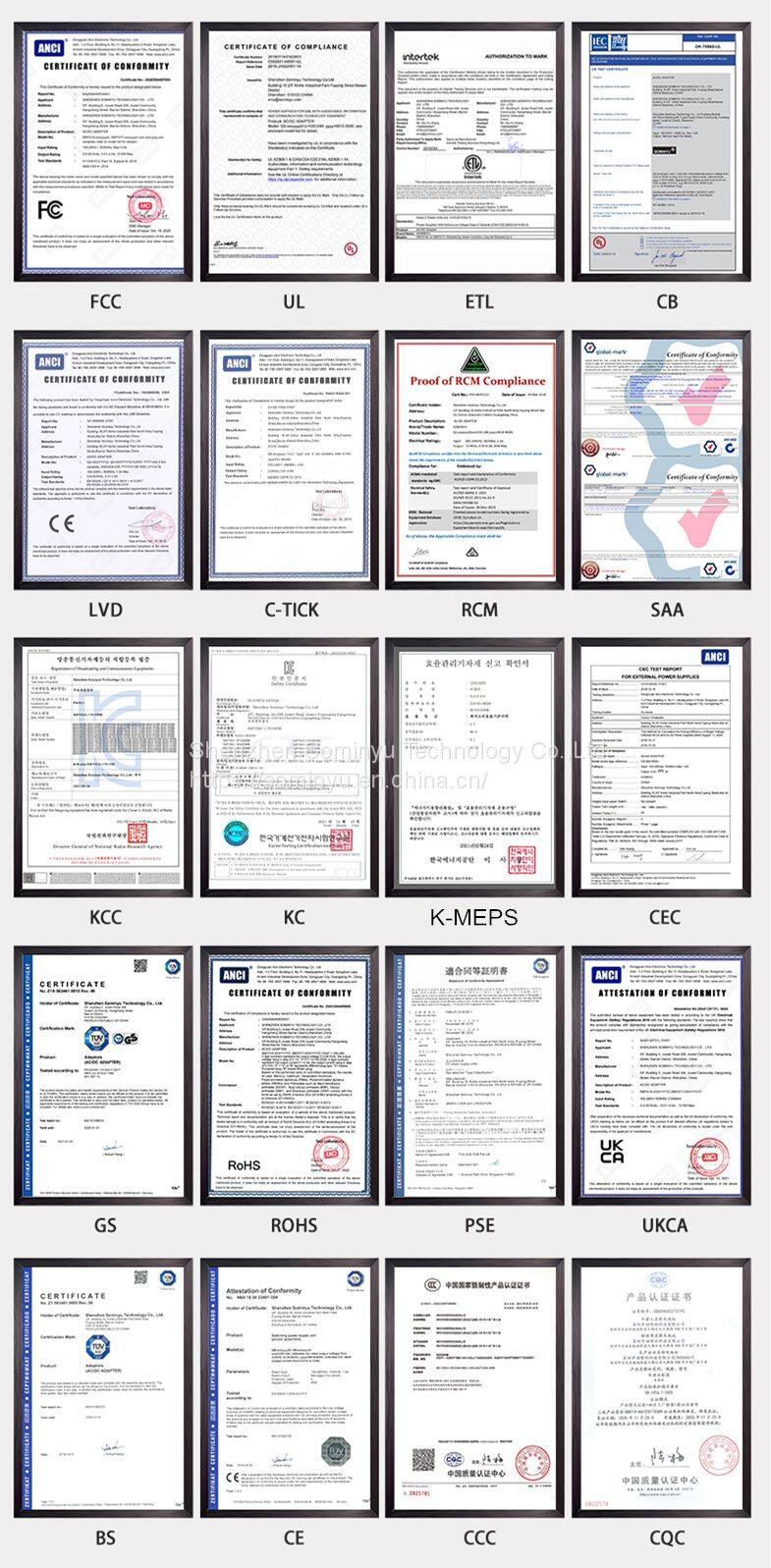 CE GS FCC SAA UL ROHS PSE KC CCC BS CB C-tick RCM etc. |