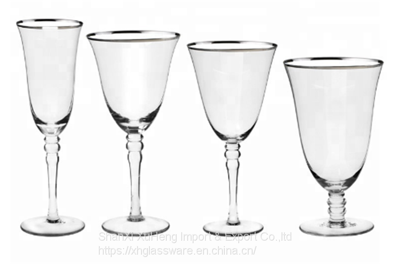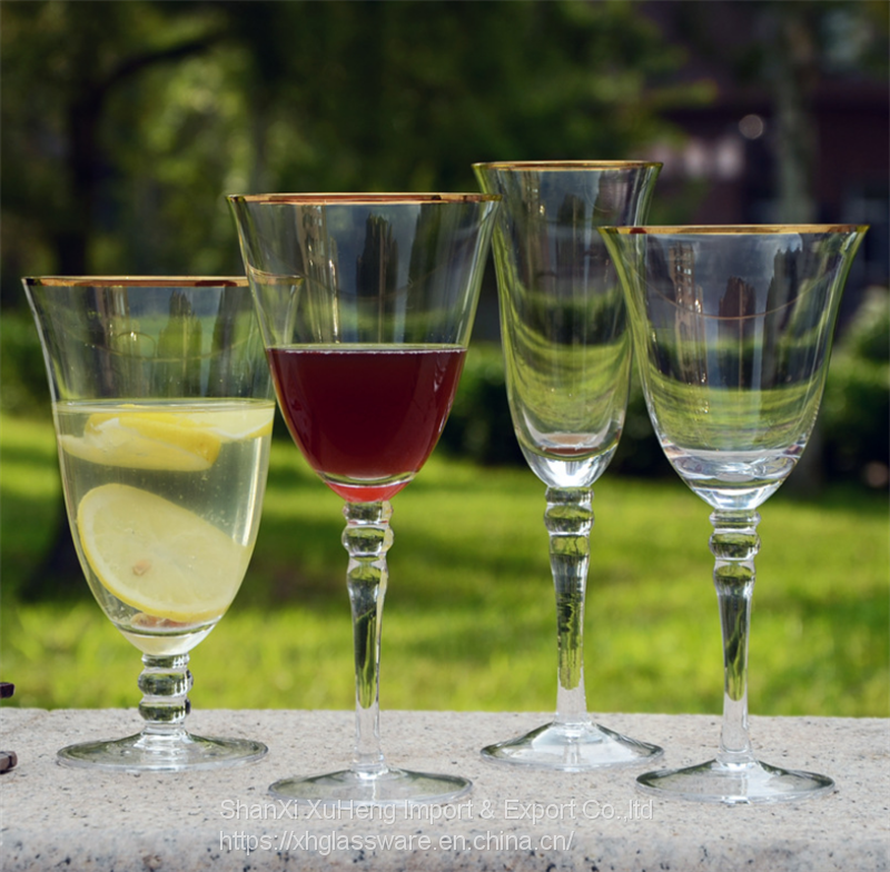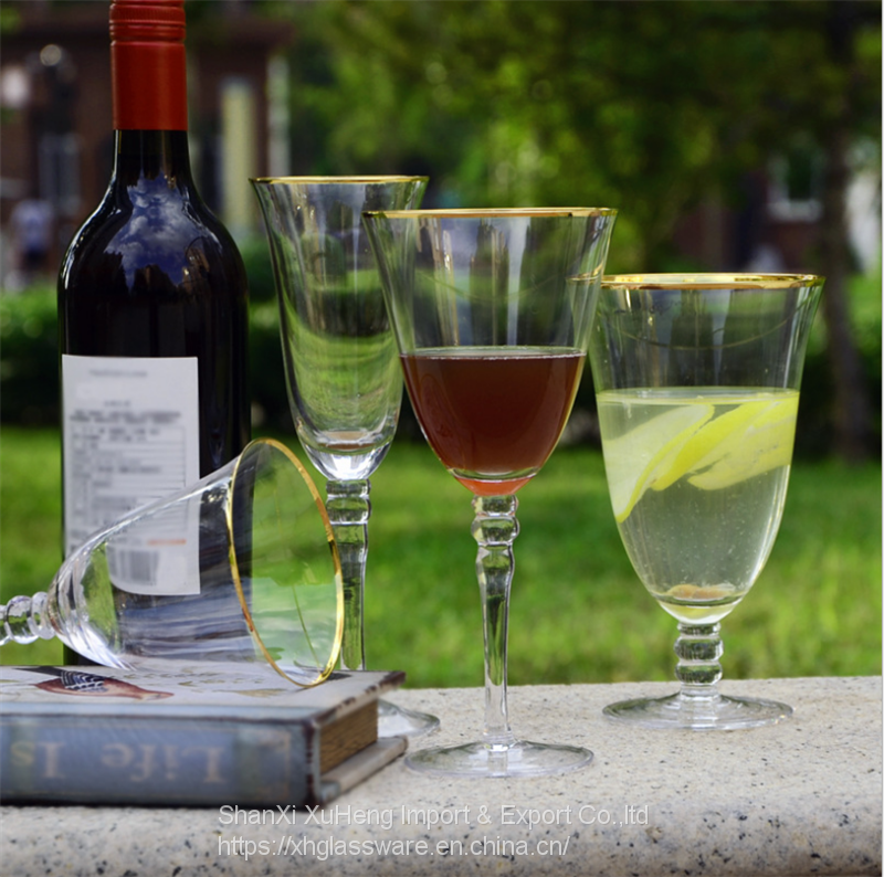 Home > Products > Wine Glass and Water Drinking Glass > Most Popular Gold Rimmed Champagne Wine Water and Drinking Glass With Double Band For Wedding Banquet