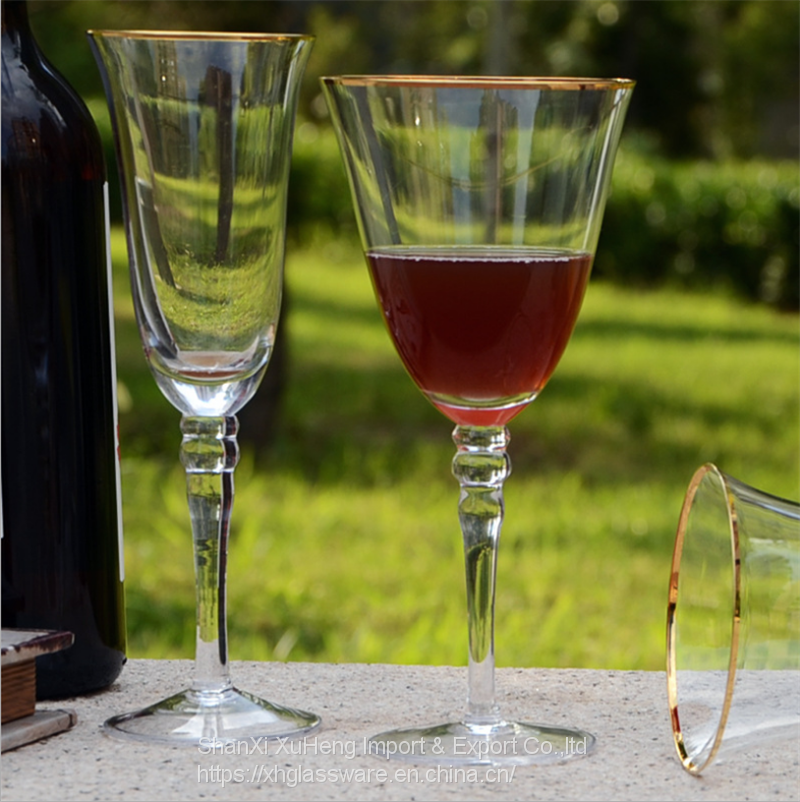 Factory Hot Sale Nordic Red Wine Crystal Glassware Champagne Creative Romantic Wedding Goblet Red Wine Glasses With Gold Rim
