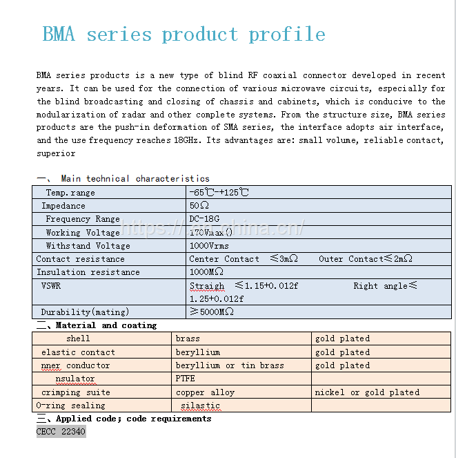 RF Coaxial Connector BMA-JFD8 Two Hole Flange Pitch-row12.2