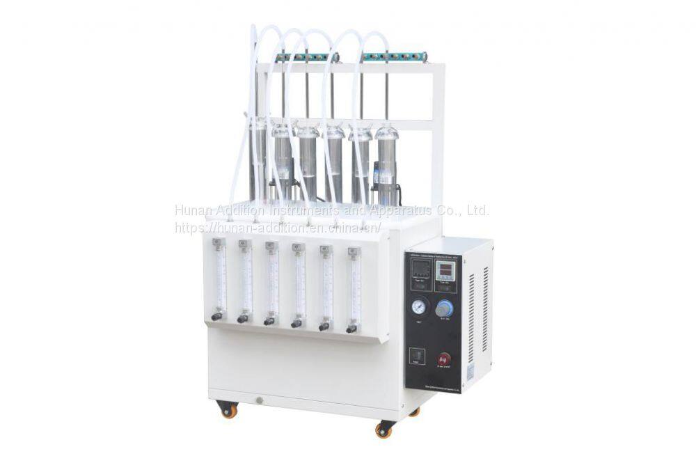 The test method of this instrument: put the filtered quantitative sample into the oxidation tube, pass in oxygen at a rate of 50ml/min, oxidize at a certain temperature for 16h, then cool the oxidized sample to room temperature, and then filter. The insoluble matter can be filtered out. Wash the adhesive insoluble matter from the oxidized tube wall and the same tube wall with a triple agent, and evaporate the triple compound to obtain the adhesive insoluble matter. The sum of the amount of leachable insoluble matter and the amount of adhesive insoluble matter is the total amount of insoluble matter, expressed in mg/100ml. This instrument is not suitable for fuel oil containing residual oil and synthetic fuel oil whose main components are non-petroleum components.